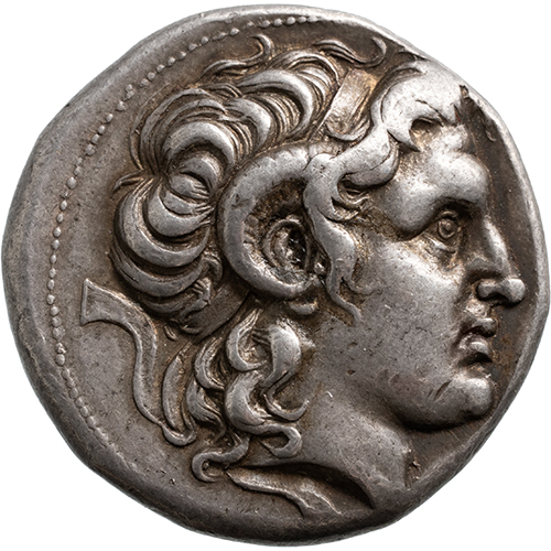 Obverse: diademed head of the deified Alexander right, with horn of Ammon