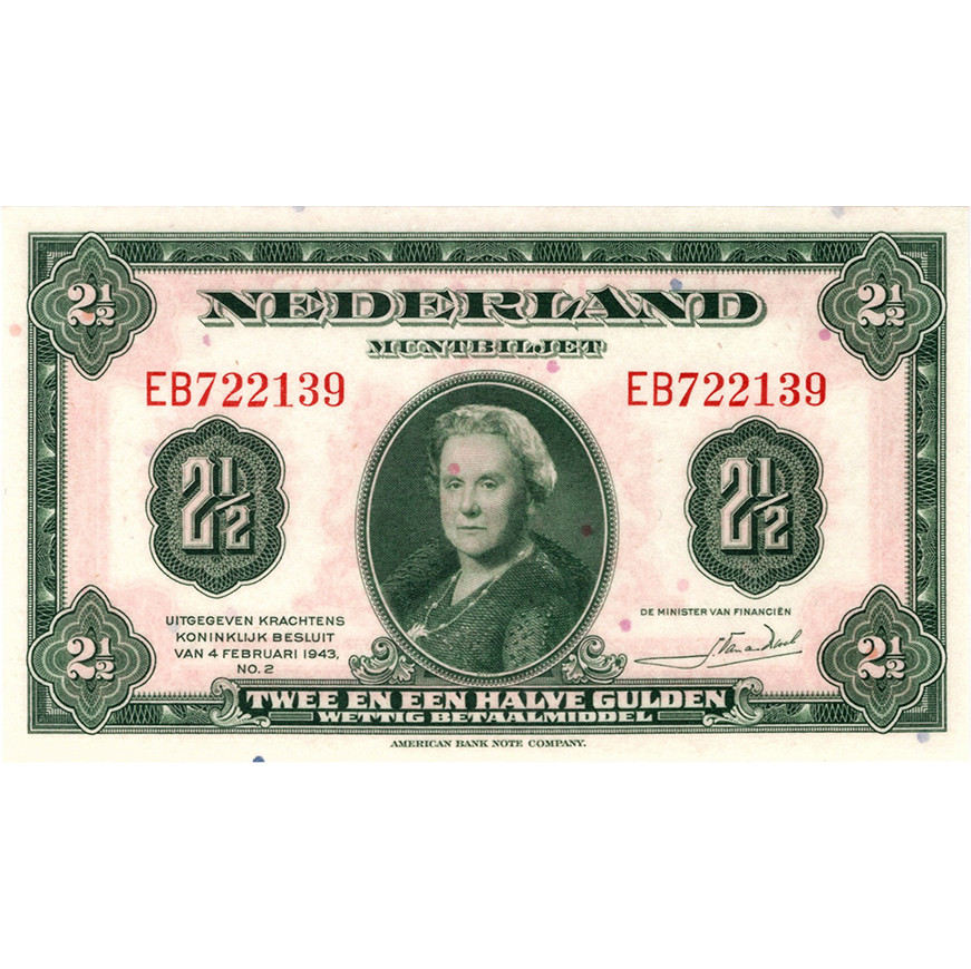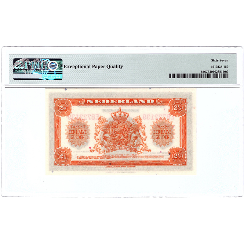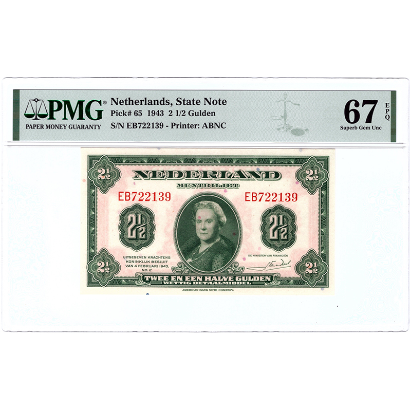 2 1/2 gulden 1943 Muntbiljet PMG 67 EPQ aantal