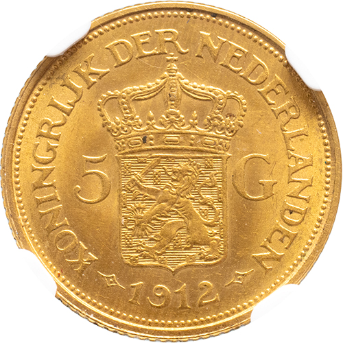 Keerzijde: gekroond Nederlands wapen tussen 5 – G