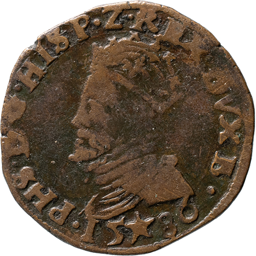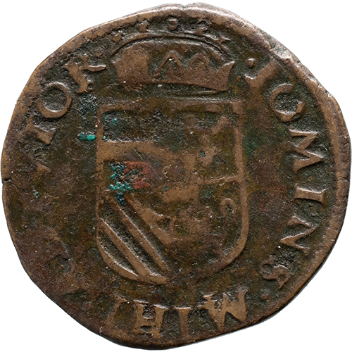 Keerzijde: DOMINS . MIHI . ADIVTOR, gekroond Oostenrijks-Bourgondisch wapen, omhangen met de keten van de Orde van het Gulden Vlies